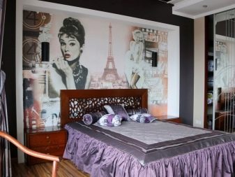 The option with posters is even more used - it is simply taken from a printing and design quality poster that alone (or in tandem, a trio) hangs over the headboard. A poster is not a picture, it can be unexpected, catchy, challenging. For example, you are an admirer of Freddie Mercury, and you would like to reflect this reverence in the interior. Just a portrait of the artist may not be impressive as part of the interior, but the graphic or “cartoon” image of the singer, the abstract vision is more interesting.