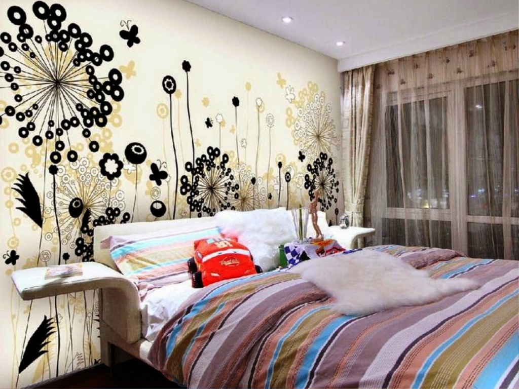 Not always bright, stylish solutions require large investments. The same vinyl stickers are cheap, but how effectively they transform a room. Or a small woolen tapestry - simple, neat, made with your own hands, it creates comfort, warmth and at the same time helps your bedroom to be fashionable.