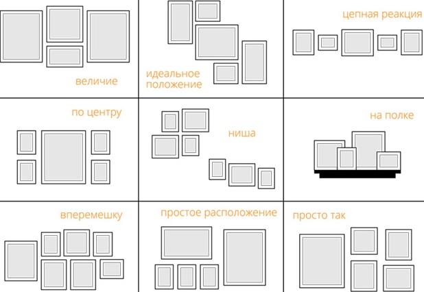 A reconciling option that has found the widest distribution today. You could hardly guess that you could hang it above the bed of the photo frame, but the question is how to do it. Examples of diagrams clearly show how the compositions of the frames above the bed can look: it remains only to skillfully repeat them.