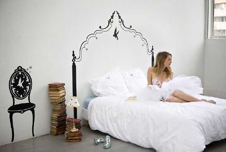 - Sometimes the best solution for a decor is the simplest. For example, with decorative pillows you can gracefully decorate the headboard area. Pillows can be high, they can be many. Sometimes the drawing or print that is placed on the pillows is repeated in a small picture in the area of the head.