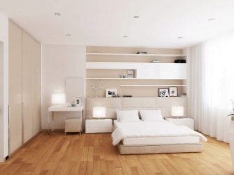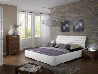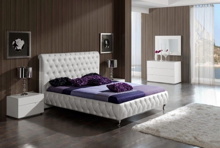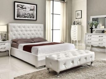 A white bed with a soft headboard will look especially stylish. The back can be framed by a sofa constriction, and next you can put all kinds of ottomans and stools.