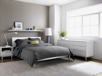 A quiet bedroom in white and gray tones looks expensive and organic, having to rest and sleep. You can “play” with elements of furniture, combining colors, and you can arrange everything in white, and underwear and accessories - gray. And vice versa!