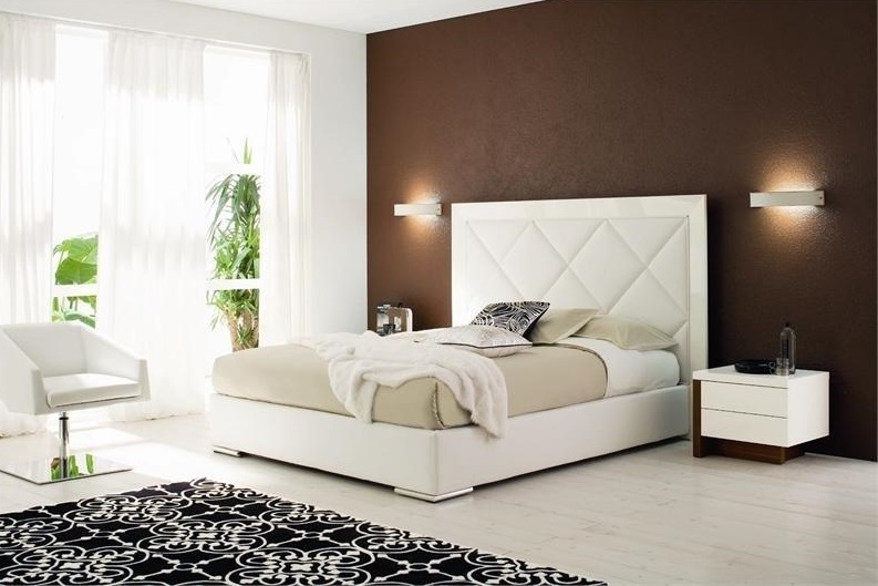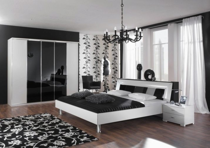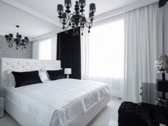 - Classics of the genre - white and black gamma. The solution for the modern bedroom: the finish can be very different - wallpaper, drawings, paint.