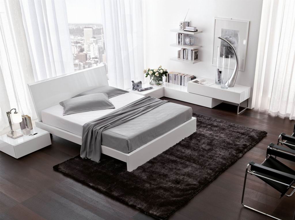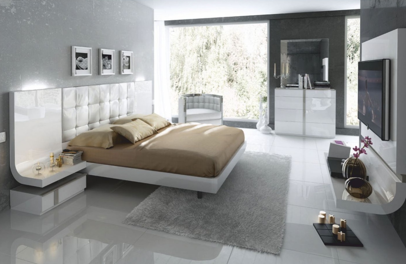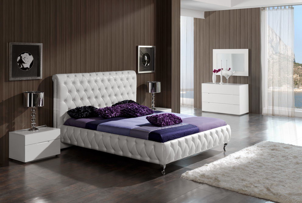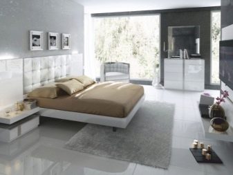 A stylish bedroom with a white bed will appeal to absolutely anyone. An elegant solution for connoisseurs of modernity. Most often the beds in this style are upholstered and rather cumbersome, visually even changing the size of the furniture. It is very difficult to clearly define the framework of the modern style, because he does not have any generalized form, and in different countries he places the accents differently. However, All designers are united in the opinion that modern is natural, inconspicuous colors, symmetry and smooth transitions in everything.