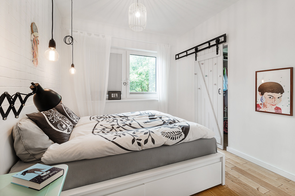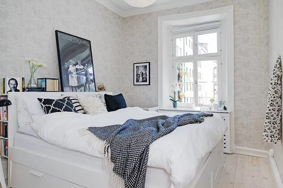 Scandi design This is practical without furniture overload, so besides your bed you will need to purchase a maximum of a bedside table and a desk lamp. If you get the impression that the bedroom has become similar to the operating room, then play with flowers - for example, make bright bed sheets that will add contrast to the general mood.