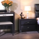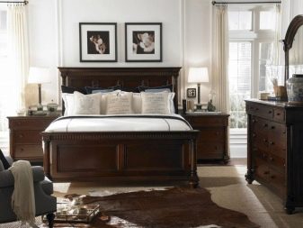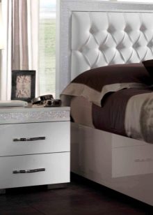 - Rich dark shades. If the bed in your bedroom is decorated in rich chestnut, brown or dark shades, it is not advisable to buy the same dark bedside cabinet. Of course, it will perfectly complement the design of the bed, but at the same time you can make the furniture (and with it the room) a gloomy look. To avoid this, the model can be decorated with glossy, glass or mirror inserts (or pick up models with such inserts).