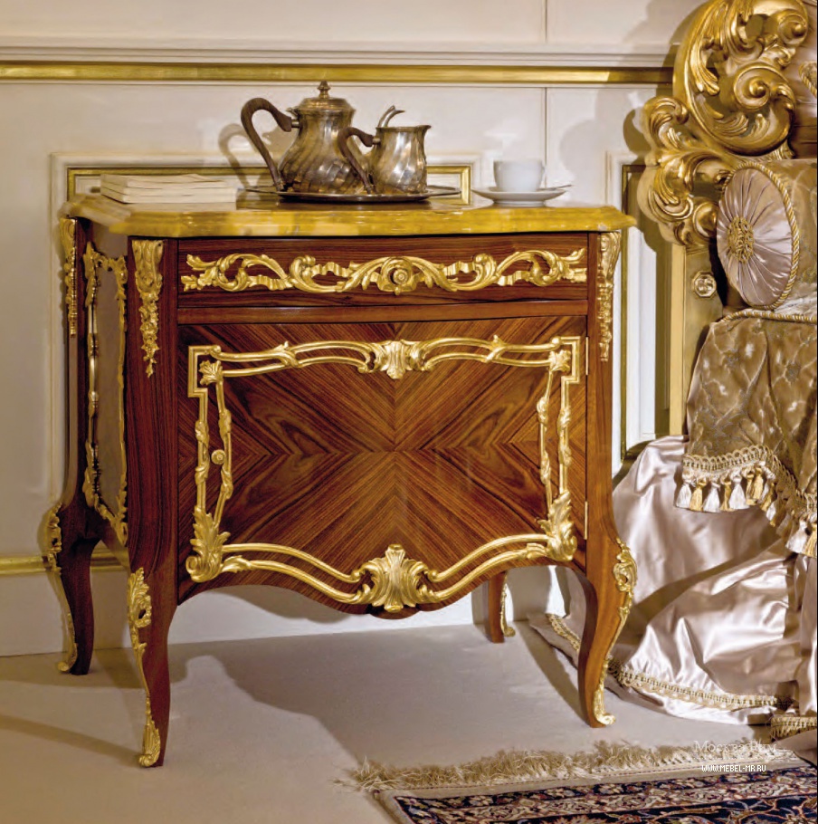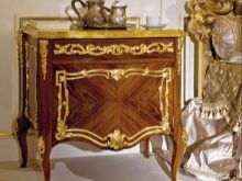 - Gold and "expensive" colors. Styles such as art deco, baroque or classicism just look great with rich hues. This refers to gold, silver or platinum colors, designed to give the furniture an elite status. In this case, it is wiser to choose options for curbstones made of natural wood, but with bright golden or silver accents.