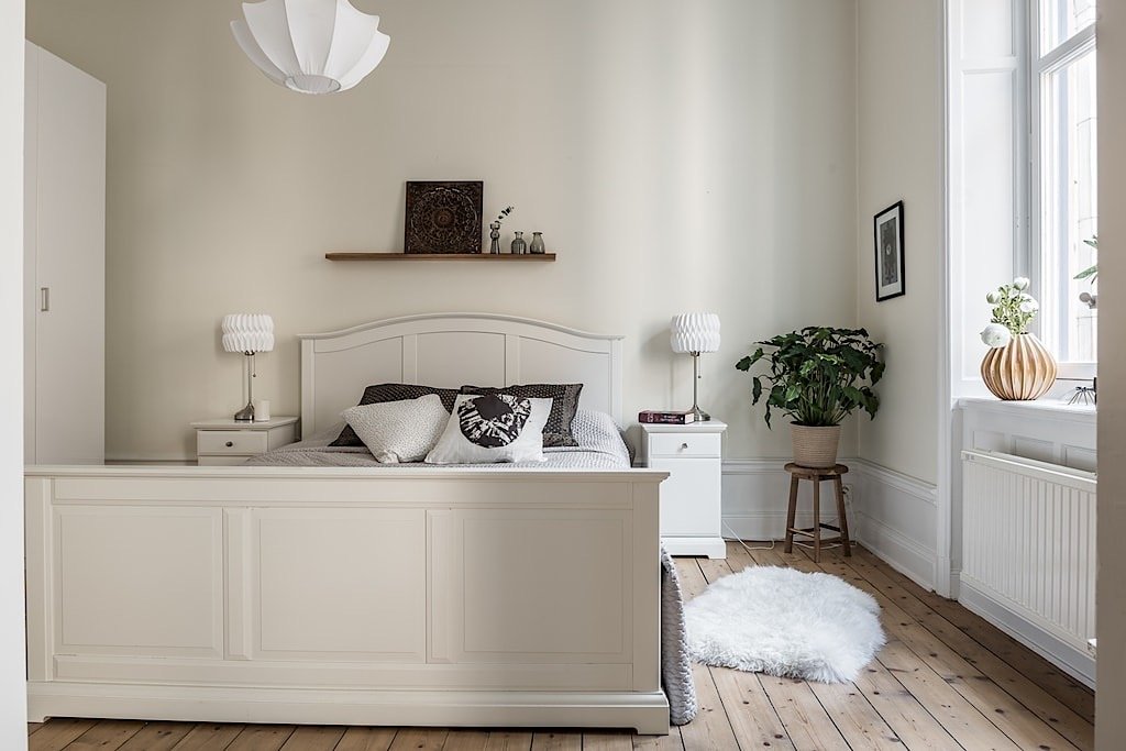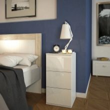 - Scandinavian style. In the design of the bedroom in this style fit the most simple pedestals light colors. This is the option when the interior will look great furniture from MDF and chipboard, and not from wood.