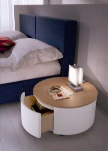 It is an ideal option for small rooms, as well as for rooms where beds are in close proximity to the wall junctions. The main function of such pedestals is to fill the free space in the corner of the room and add interior.