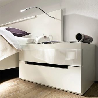 - Shine. The cabinet can serve as an additional light source - there you can place a night light, a lamp or a mini floor lamp. You can adjust the light in the room without getting out of bed.