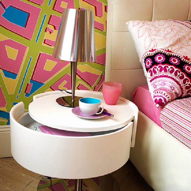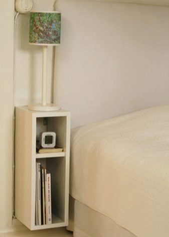 The second substantial plus of narrow pedestals is that they can be used simultaneously as supports for lamps and books, and also serve as a place for storing small things: keys, pins, cosmetics sets, notebooks, and watches.