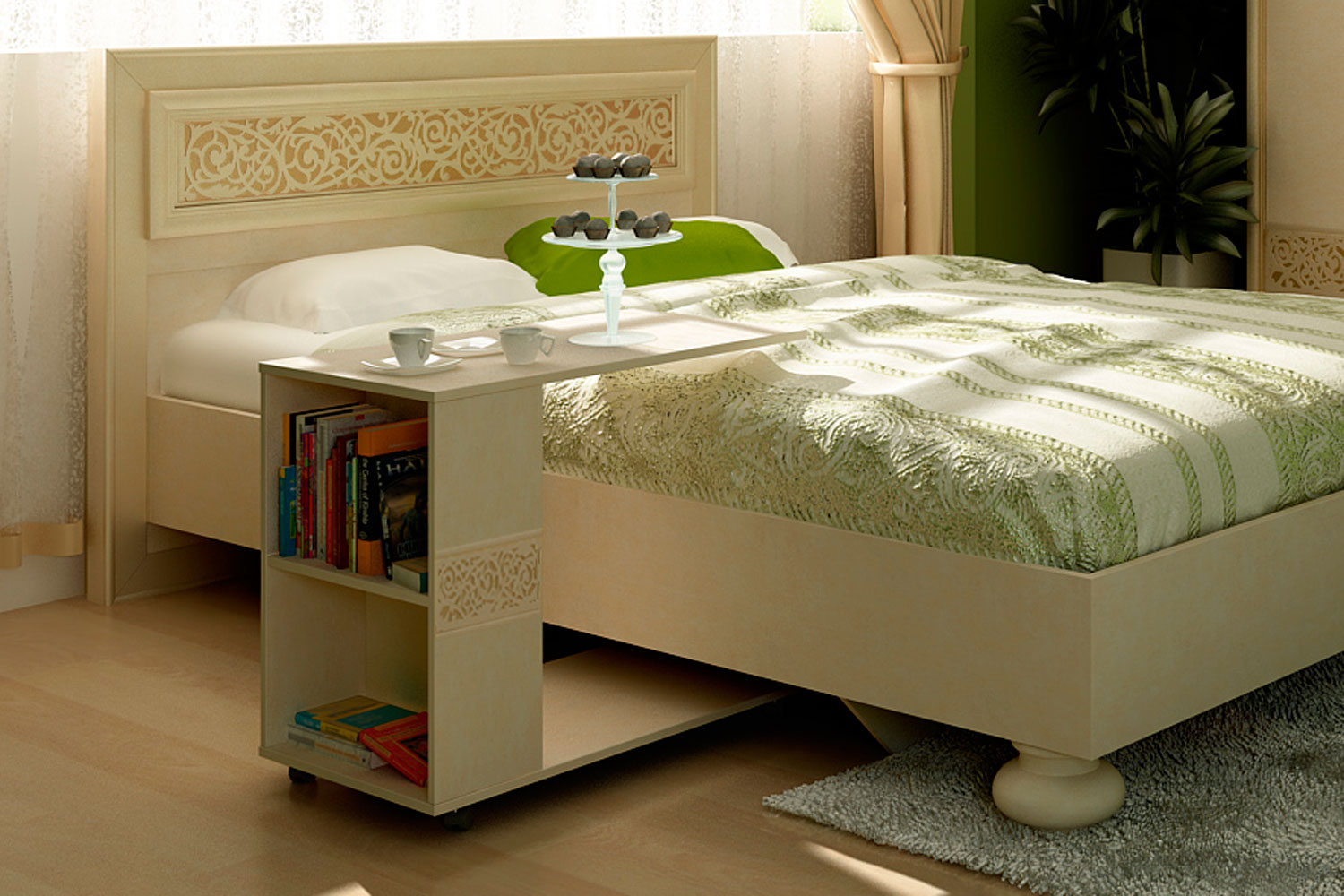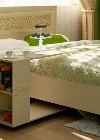 It is considered the least common option among the existing ones, since it does not look good in every interior. If at registration of a bedroom in the style of fusion, Provence or Country such a table can look good, then in classics and other styles with strict lines it will completely lose.