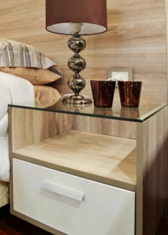 For bedside pedestals of this type are characterized by slight protuberances and light, cream shades.