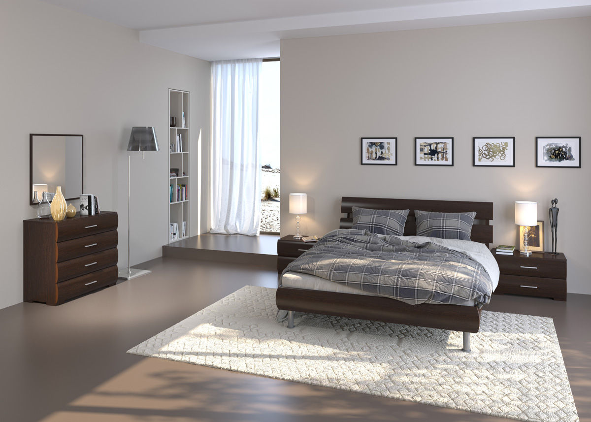 The main condition for the selection of any furniture is that it corresponds to the general color background in the room. The main reference point when choosing the color design of the cabinet is the bed and the wall, near which it will stand. Remember that the color background of the model should only intersect with the color of the bed and walls or complement it. Regardless of the interior (only if it is not about creative styles like kitsch and fusion), the stand should not be contrasted in color with the bed.