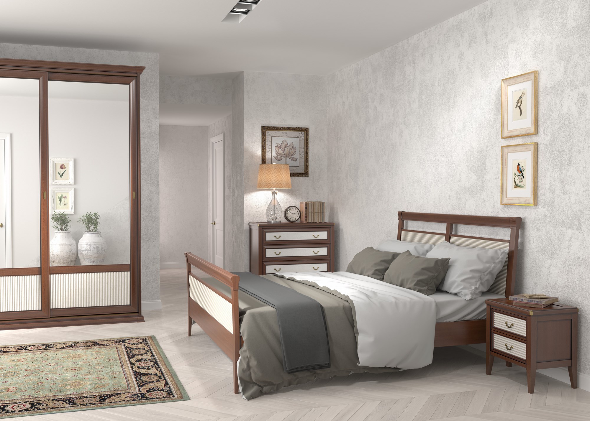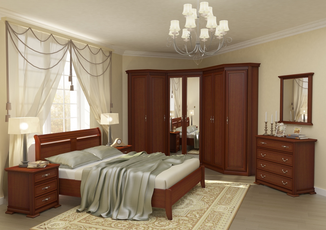 - Classic. In this style, the options from natural wood or solid wood will look great. Wood color and texture should be selected based on the color background of your bedroom.