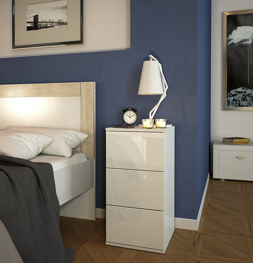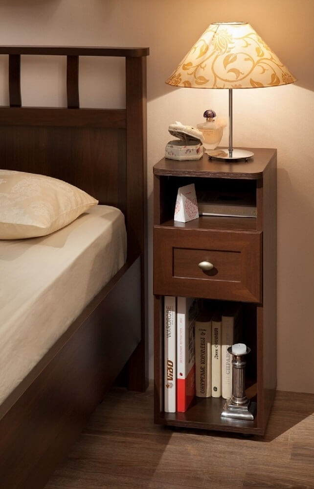 - Fast access. Bedside cabinets serve as a place to accommodate many essential items. Agree, it is much more convenient to reach in the morning to the alarm clock on the cabinet than to get up and turn it off in another room.