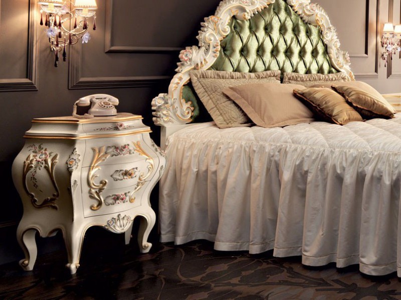 - Baroque. This style in the design of the bedroom includes curved lines, bumps and some flatulence. Here, extraordinary curved or convex facades with round or oval fancy drawers and handles will look great.