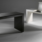 The tree is used practically any, and glossy gloss is given to it by a covering by a varnish, paint or wood stain. The metal is either used to make a complete structure, or only forged legs are made from it. Natural stone is used either for the countertop, or for a separate decor. Glass is used not only transparent, but also dark, and again it is chosen not for the whole structure, but only for the table top.If we are talking about fashionable modern materials, then you should choose furniture from eco-leather, especially if the room is decorated in the style of minimalism or ecostyle.