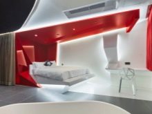 It looks very stylish contrast solution, as mentioned above. For example, if the furniture in the bedroom is white, then it makes sense to buy a table of black color. This option will allow you to further zone the space without using any additional tools. The reverse solution also works - in a room decorated in gray and even black shades, a snow-white table will look interesting.