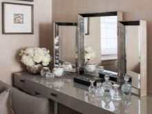 When choosing a set with a mirror for the bedroom, you should consider the material used, and the design of the furniture, and its functionality. For example, if the hostess has a large number of cosmetics and accessories, then it makes sense to purchase a model equipped with a sufficient number of shelves and other storage spaces. Preferring closed boxes, it will be possible to create a more accurate picture. For a small bedroom should consider the possibility to build a dressing table directly in the closet.