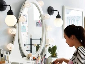 An important component of the design space of the dressing table becomes the organization of lighting, which, in principle, it is logical, because in the dark it will not work at all.