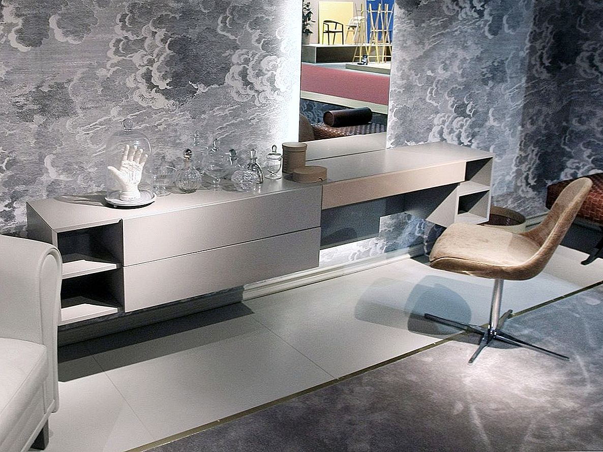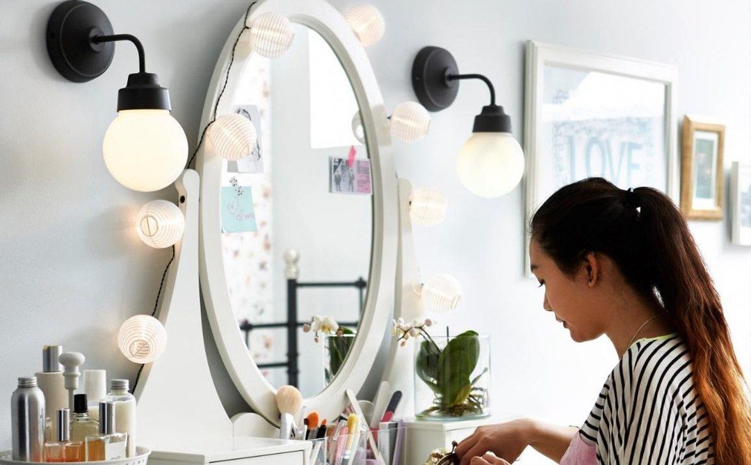 Conveniently, if a small low-emission chandelier located directly above the beauty zone will be chosen as a lamp. No less comfortable a pair of sconces on either side of the mirror. For frequent use it is better to initially choose a mirror with light. Having the lamps, it is important to ensure that they are not reflected in the mirror, and the light itself is soft and diffused. If the shape of the room allows, it is better to place a dressing table next to the window and thus ensure the availability of daylight.