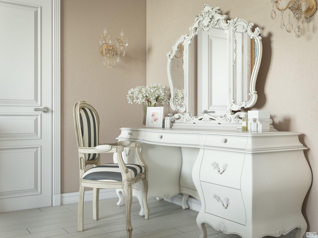 The dream of many girls is to get a beautiful dressing table in the bedroom. Thanks to a large number of modern stylistic solutions, it will be possible to place it in a room of any size and design.