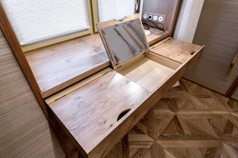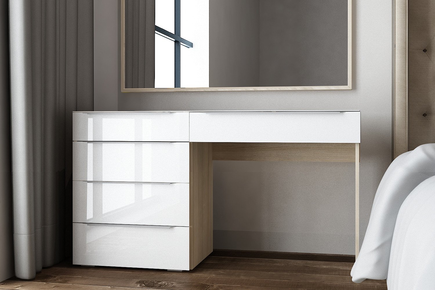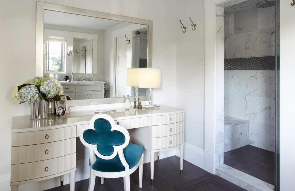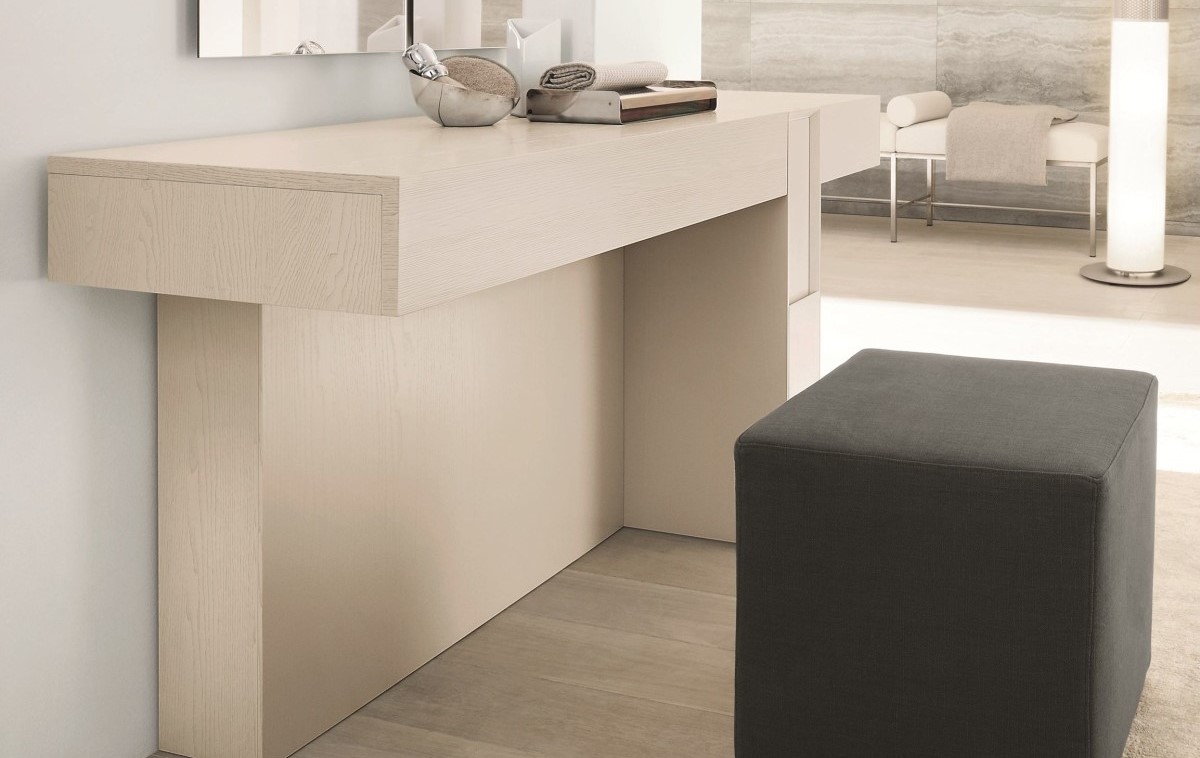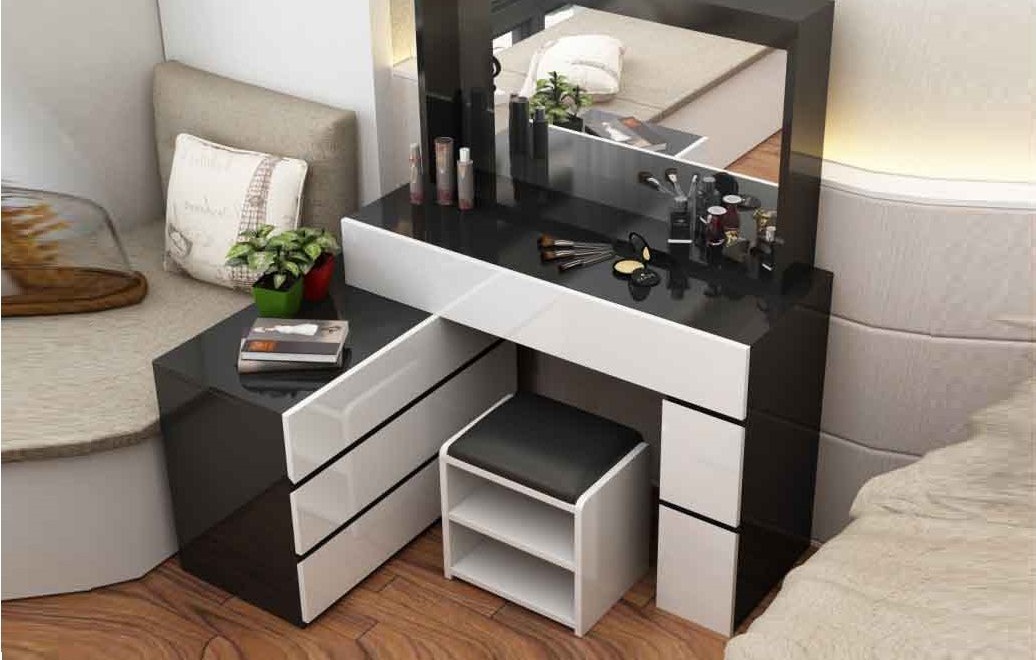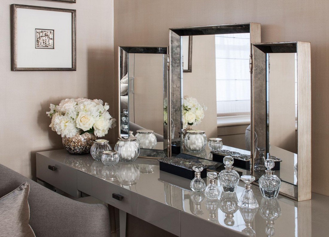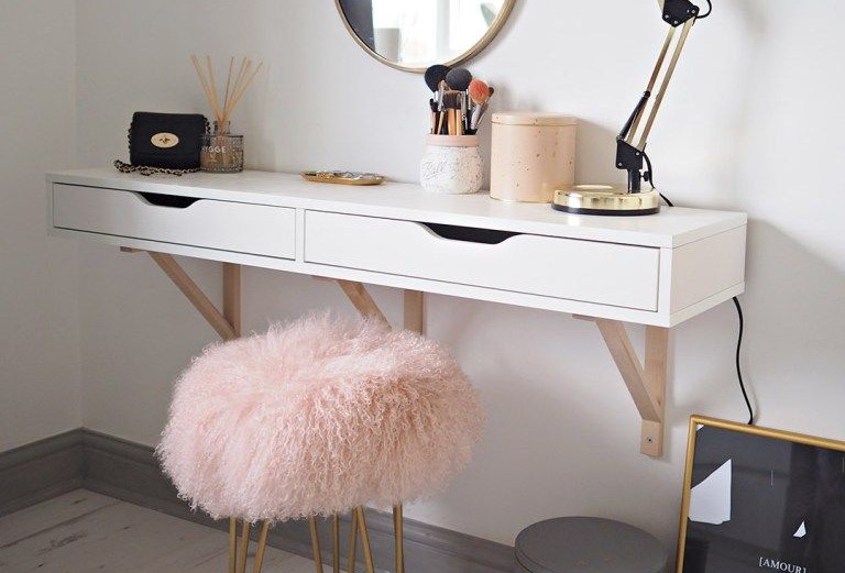 By design, the dressing table should match the rest of the items in the room. This concerns the material, color palette, and general stylistics. The size of the product should provide free access to it.