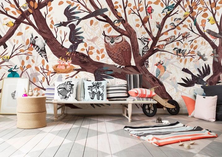 No less often, than reproduction of a laying, wall-paper with birds can be used. They create an interesting and unusual appearance. Images of birds will help to emotionally relax and relieve excessive mental stress. In addition, it is very beautiful, but only if the compositions are chosen correctly.