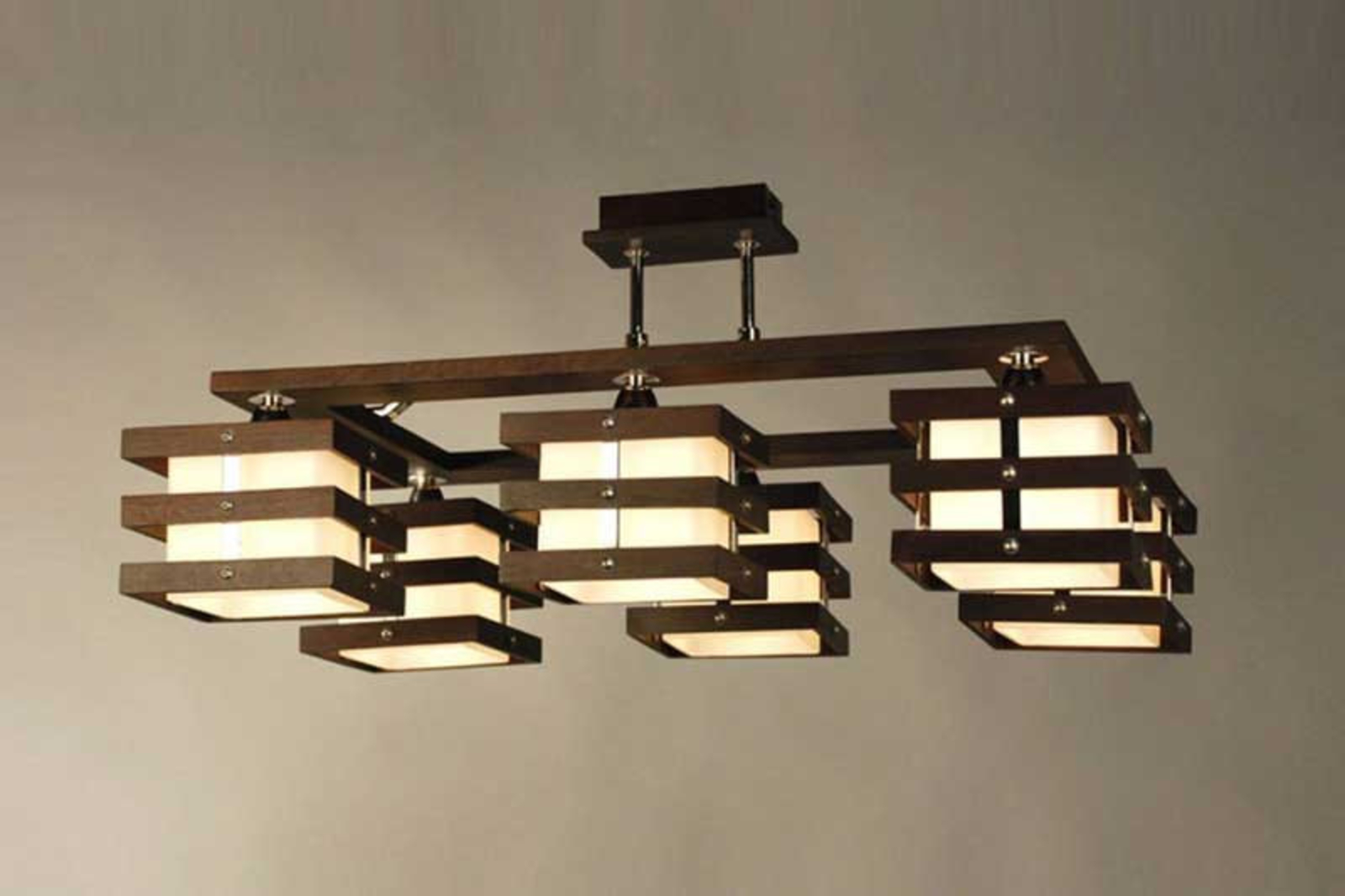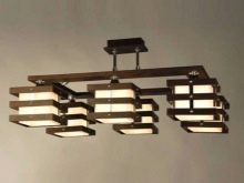 Wood-based luminaires are practiced in separate styles: classics, provence, country. As a rule, these are suspended arty specimens on a carved skeleton. They are made from ordinary valuable wood - walnut, cherry - and from exotic (cork, wenge).