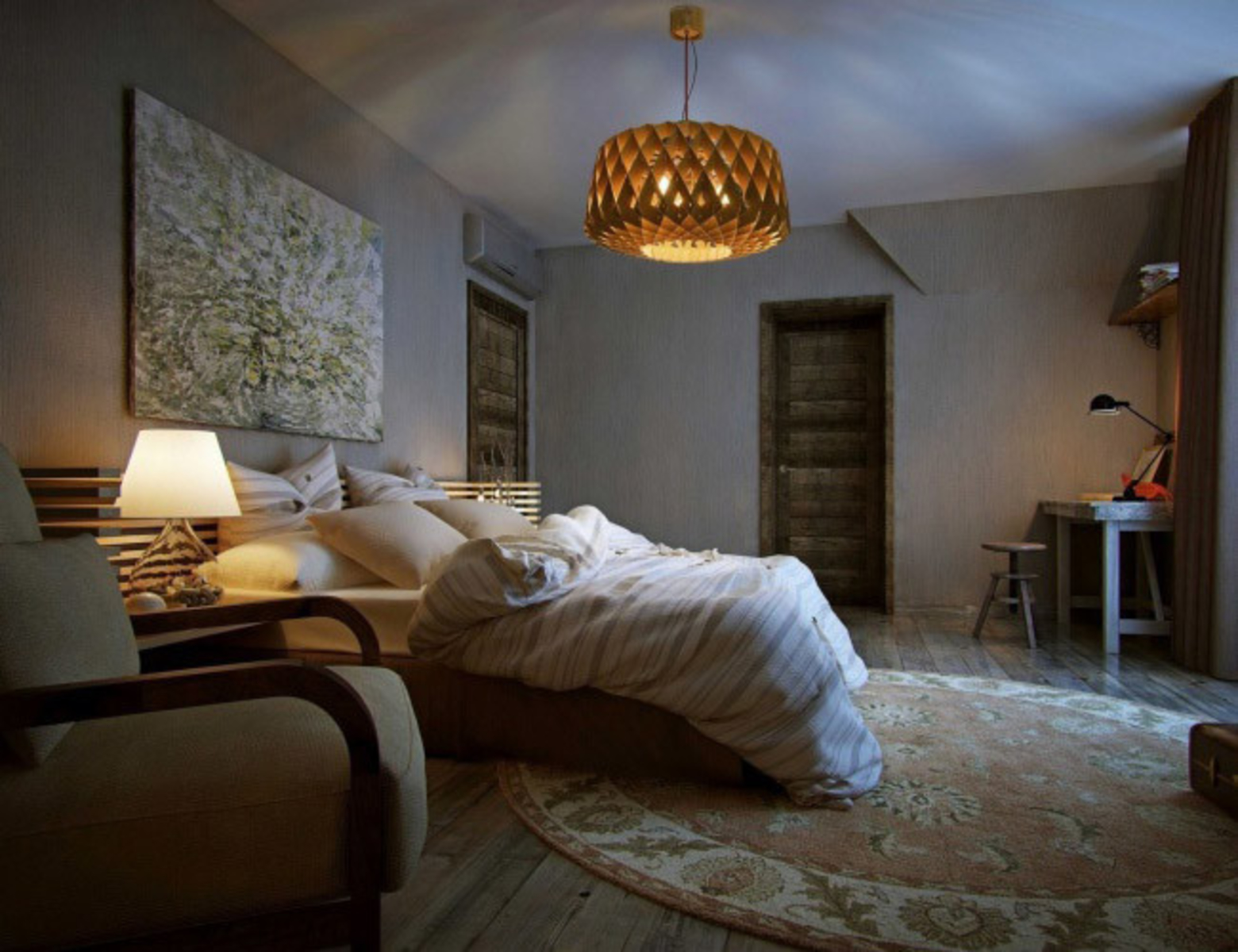 Chandeliers of these style trends have the right to occupy a fitting place in the sleeping room, if the design of the room corresponds to the style of these trends. A lot of warmth and comfort contains a rustic style. For a bedroom, these are necessary properties - everything depends on the requests of the owners, their principles and lifestyle.