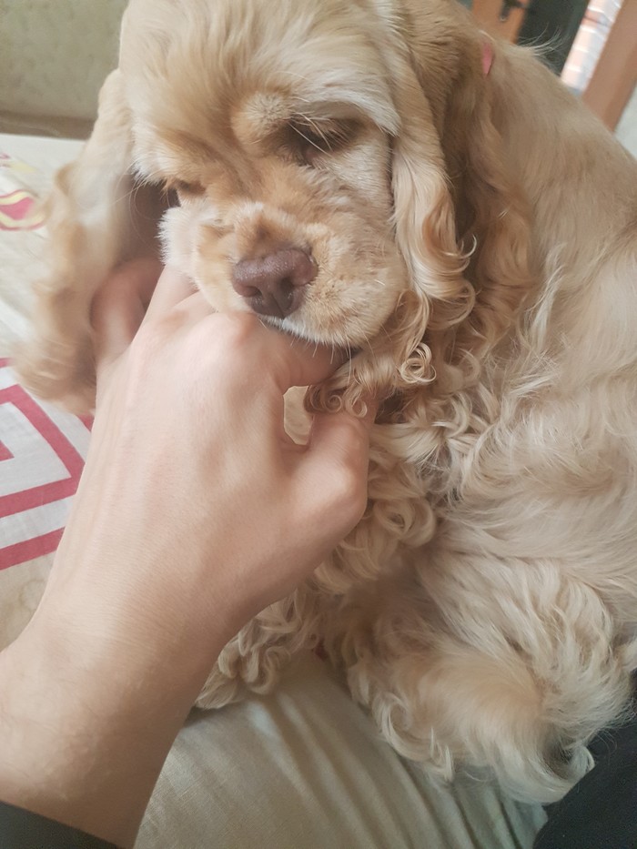 It is very important to constantly engage the ears of the American Cocker Spaniel. Before eating, you need to lift them and fix them securely with a soft rubber band so as not to dip them in food. American auricles quickly accumulate sulfur and ear dirt, so they often get ticks. To avoid such trouble, you should not less than once a week to examine the ears and the auditory canals, to remove the dirt accumulated there. For this, a couple of drops of slightly warmed vegetable oil are instilled inside and wipe the surface of the shells with a solution of boric alcohol or a special veterinary lotion.