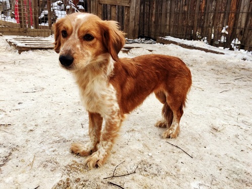 The cross between a spaniel and a husky looks very similar, only sharp-witness and shorter hair are added.
