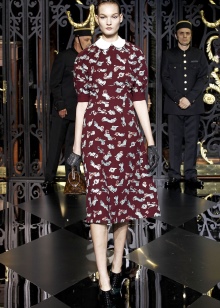 If you decide to attract attention at work, then you dress a striped or plaid dress, as well as a solid jacket. Although if you are going to meet with a business partner, then choose a free dress with a collar, and the addition will be pumps.