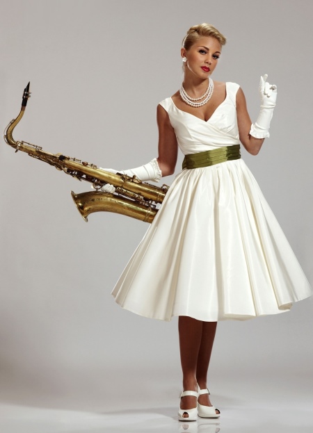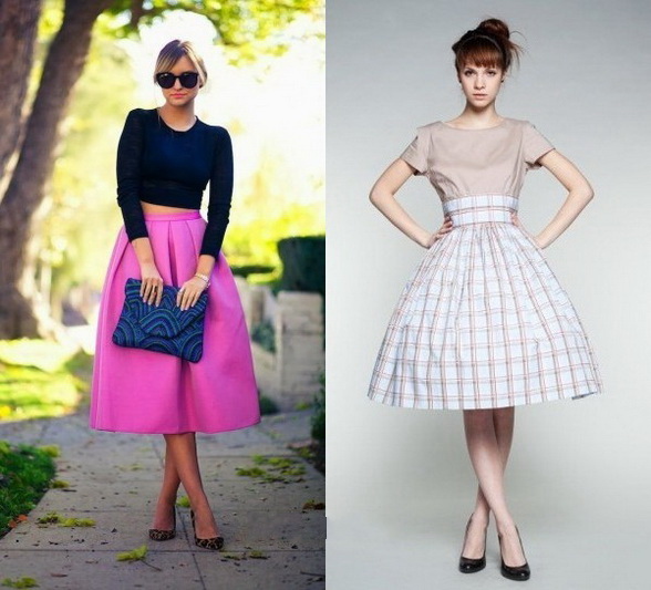 Today, the style of the 50s is back. Every thing of that time is self-sufficient. Therefore, it was necessary to wisely select additions to the image. For example, it is better to choose a calm blouse and inconspicuous accessories for a fluffy bright skirt. And, of course, do not forget about the shoes on the heels.