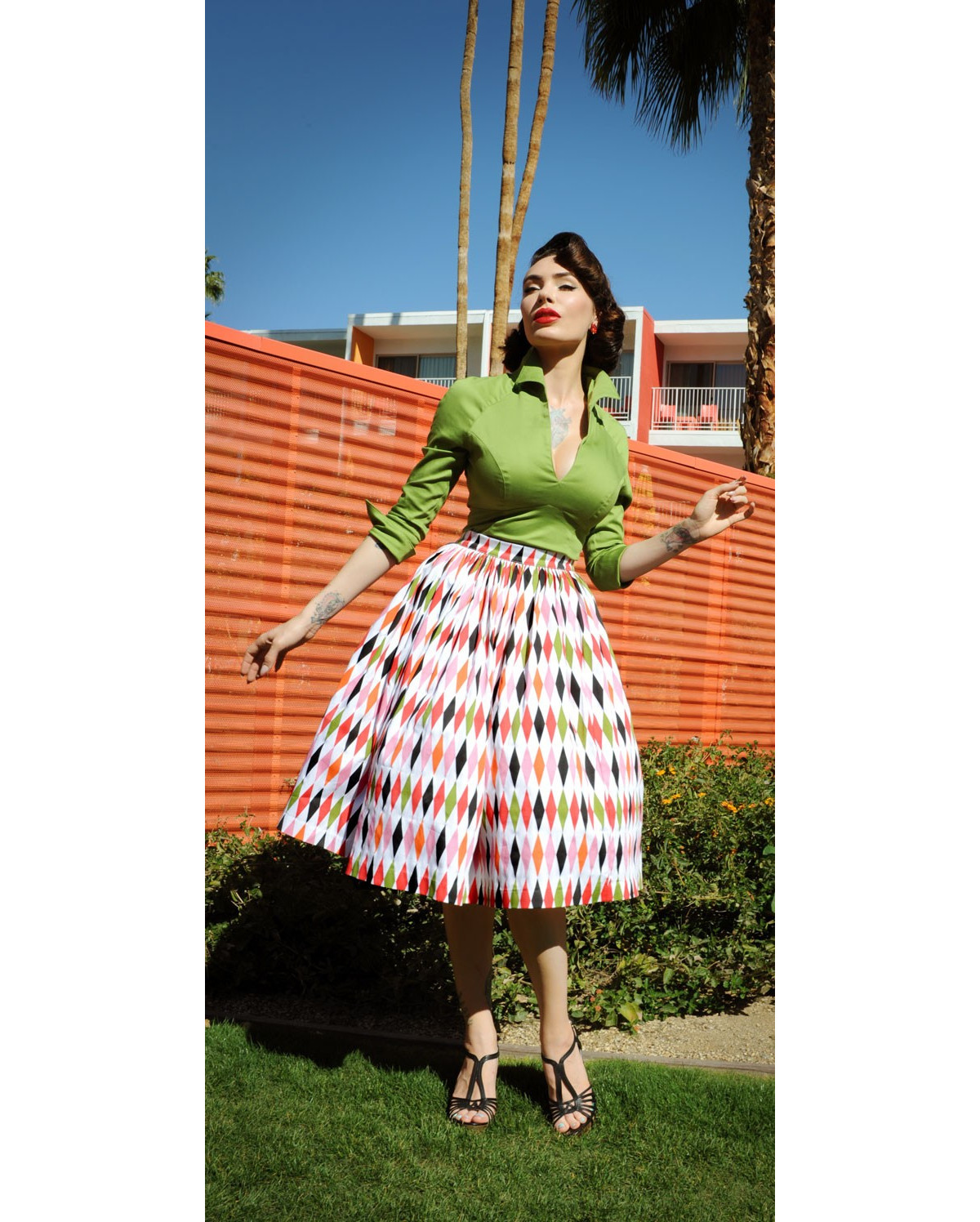 In the 50s there is no dominant color. Typical for that time are various geometric and graphic prints. Popular floral pattern.