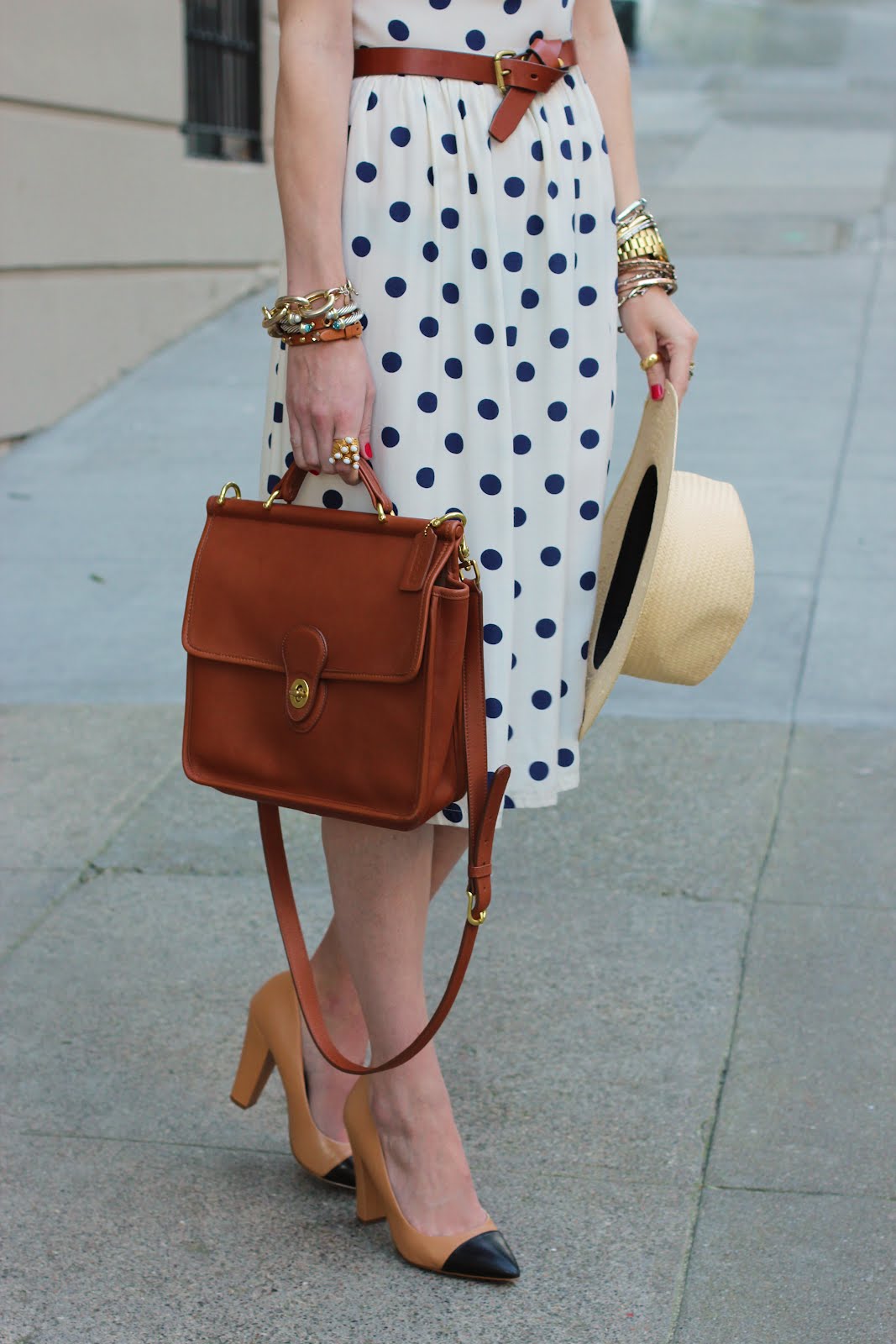 In the fashion of paired colors: blue and white, red and white. Mostly bright in the image are accessories. The catchy costume jewelry, wide multi-colored belts.