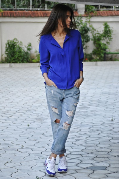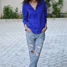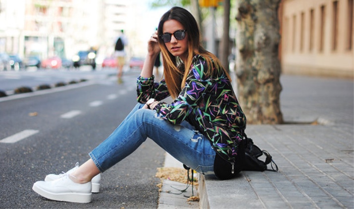 Denim pants are perfectly combined with a variety of t-shirts, shirts, blouses, jackets, as well as other casual wear. Under such an image fit bright, large accessories.