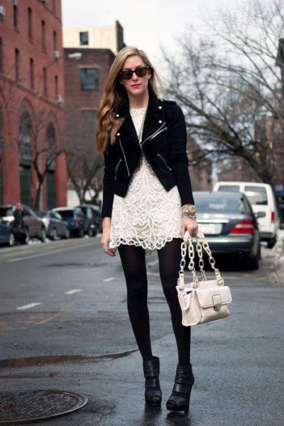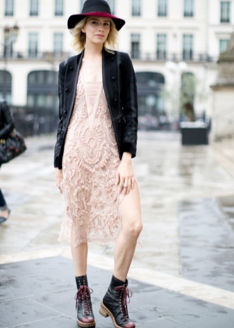 - American girls can safely combine what seems incompatible to us. For example, openwork light dress with coarse boots and a leather jacket. Although this image looks very good.