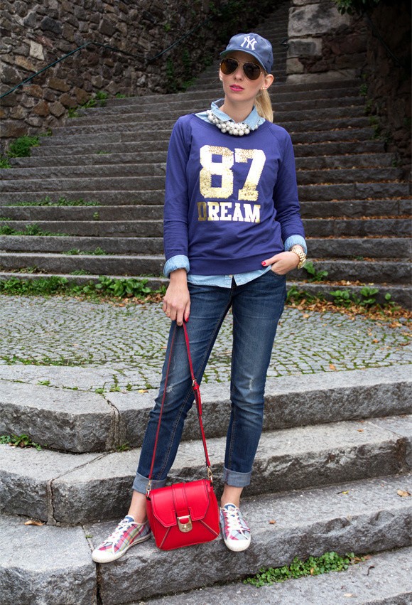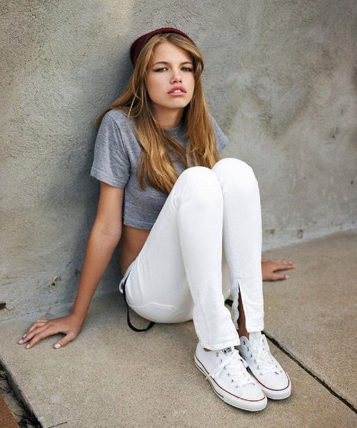 Americans like sports style a lot. In the wardrobe of overseas girls are not in a single copy there are T-shirts, shirts, various sports jackets and, of course, sneakers.