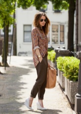 You can create a relaxed, rustic look with the help of breeches with suspenders, a loose blouse and comfortable shoes without additional straps. In such an ensemble, an ordinary straw hat will look very harmonious.