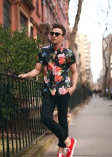 The foundation of this fashionable trend is a permanent vintage intertwined with modernity. In hipsters' wardrobe there are always skinny jeans and bright sneakers. Their youth looks are not without their shoes on the platform, various scarves, glasses in large frames, various hats, checkered shirts, shorts and T-shirts.