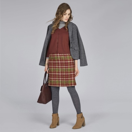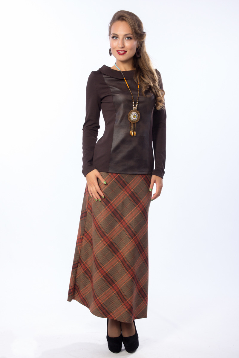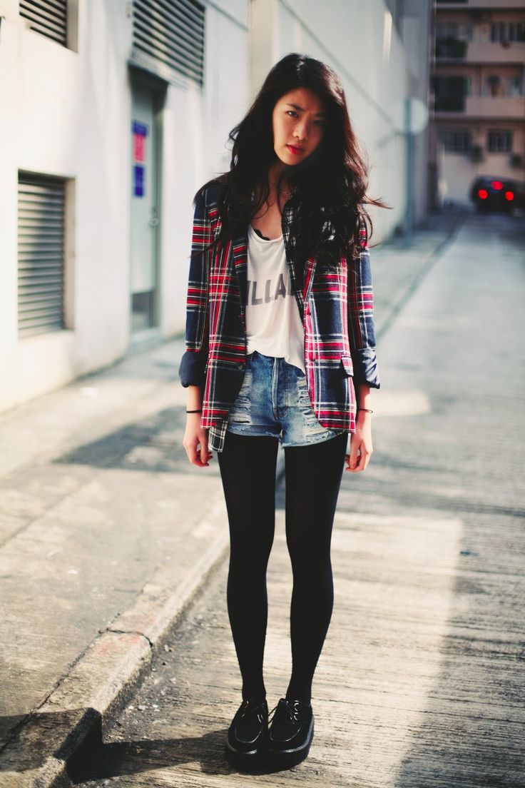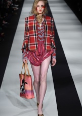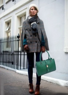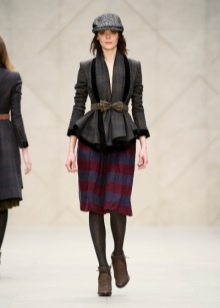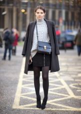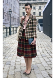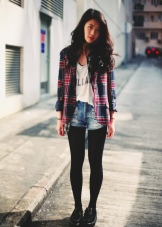 A young fashionista can dress in a knee-length plaid skirt, a burgundy sweater and thick gray tights. A gray or black jacket can be worn over the shoulders, and brown boots with a steady heel can be worn over the legs. It is recommended to supplement the image with a large leather bag of dark brown or black color.