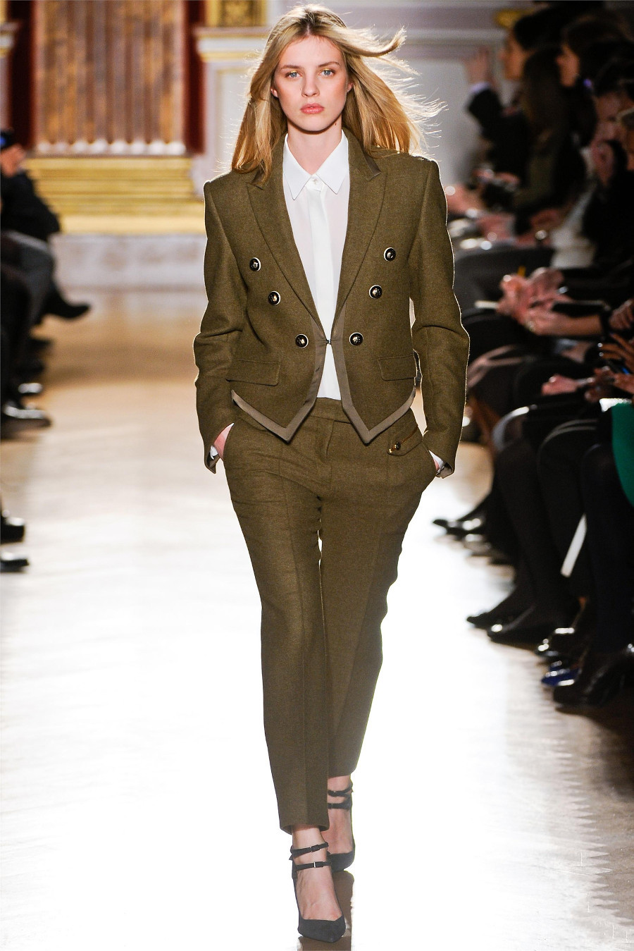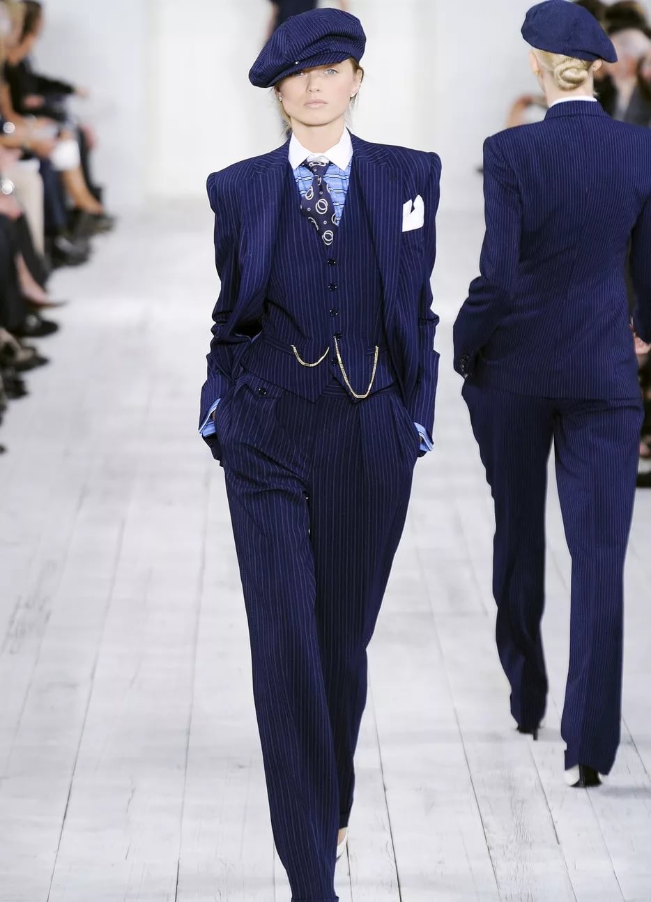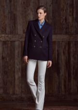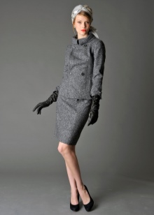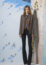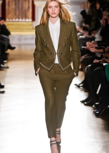 - In the wardrobe must necessarily be a suit of classic cut. A similar outfit was designed by the famous Coco Chanel about a hundred years ago. At that time, on the podium, the ladies showed skinny trousers, tight-fitting skirts and solid jackets. Formal costumes were borrowed from the men's wardrobe and perfectly fit into the elegant female images.