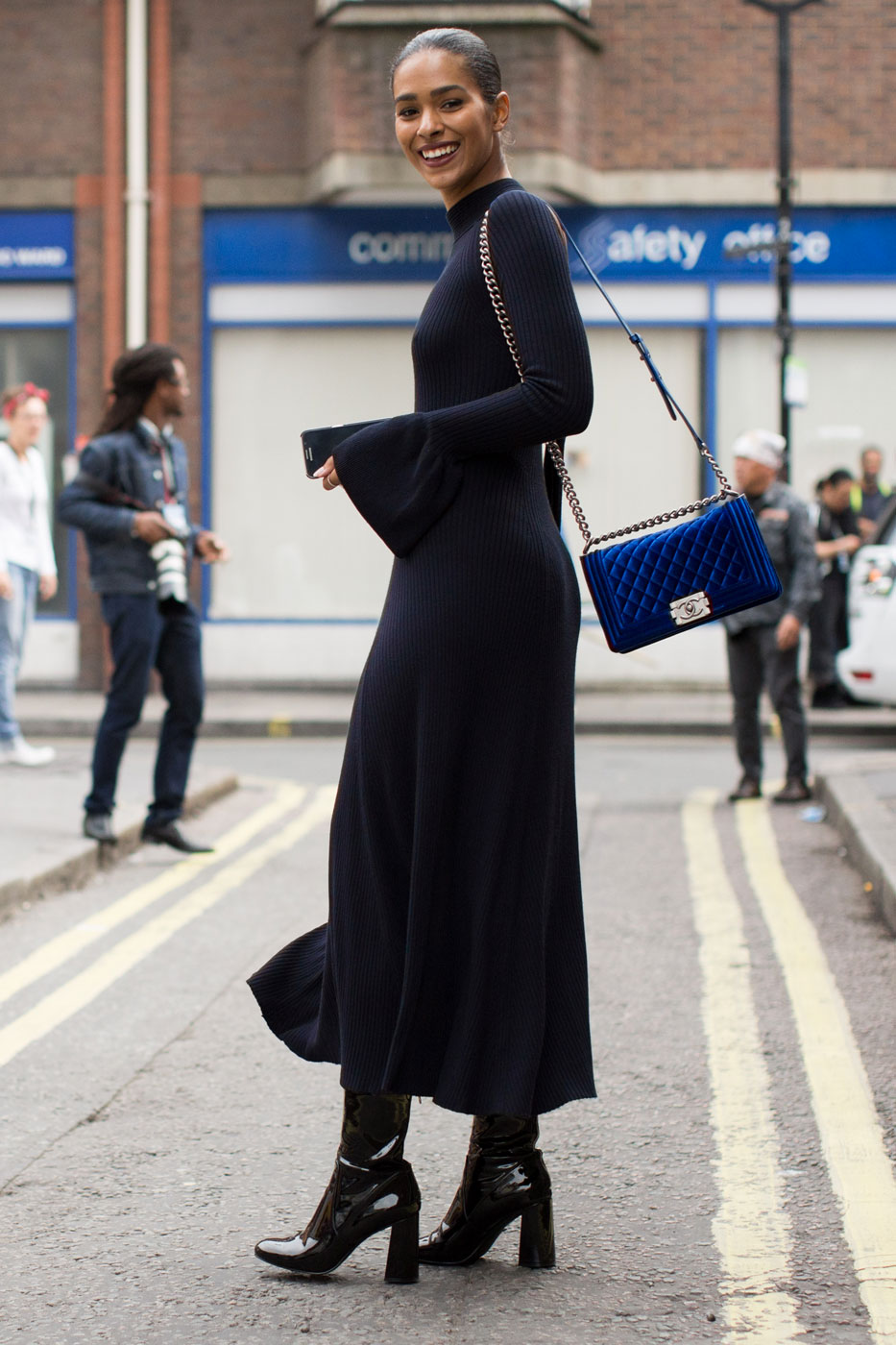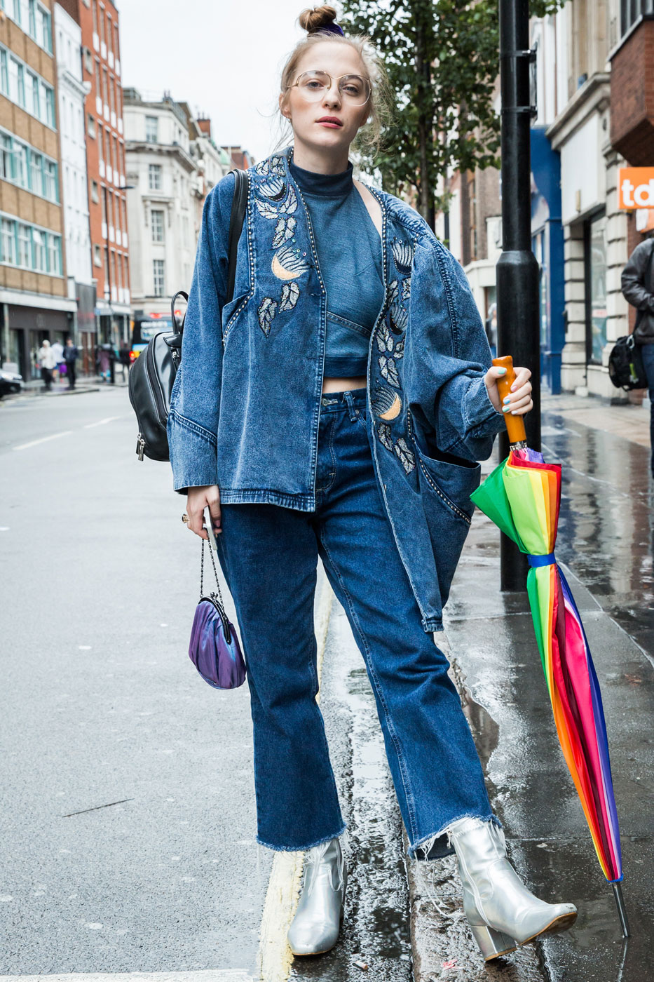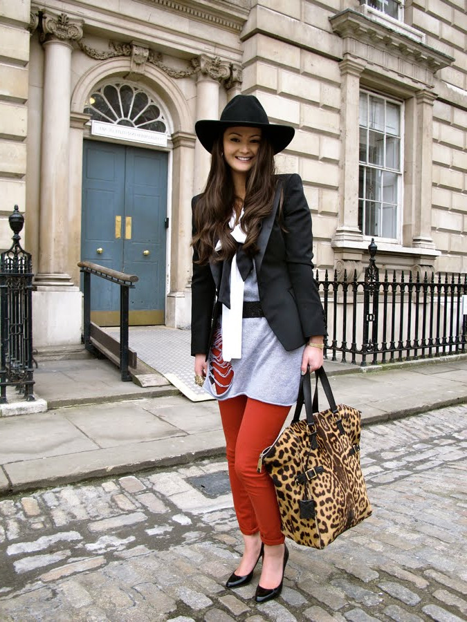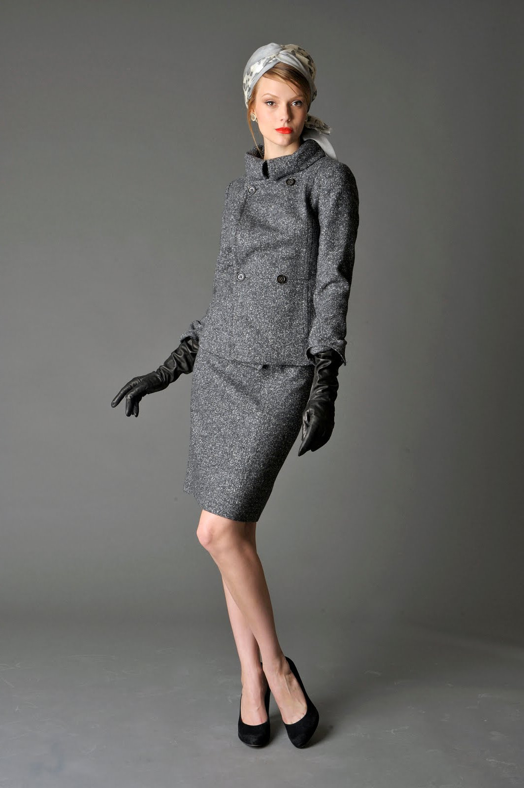 If you want to look feminine and sexy, then you should turn to an effective combination of a pencil skirt, blouses with a discreet print and a leather jacket with a fitted cut. From the shoes you should choose leather ankle boots with high heels and platform. You can complement the spectacular image with an umbrella-cane, a small round hat, leather gloves and a small square clutch.