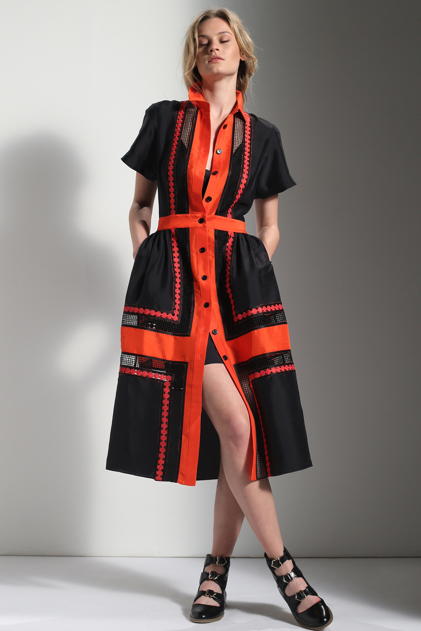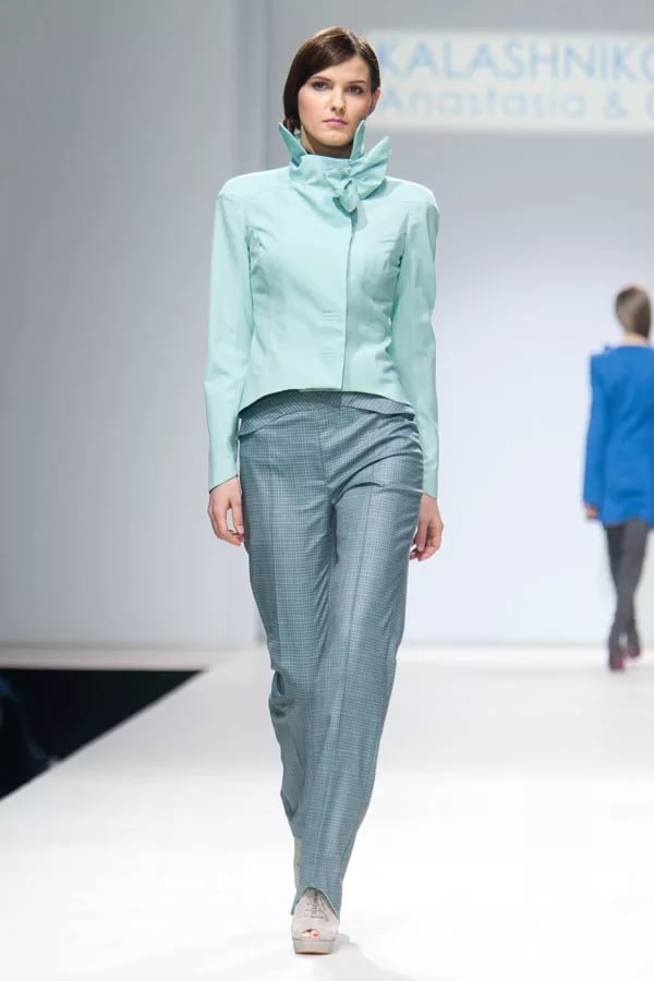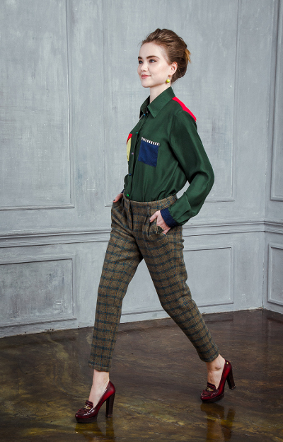 Textiles on her clothes are complemented by abstract prints with various patterns. Interesting things sew from materials of different colors, which can be combined with each other in one outfit.