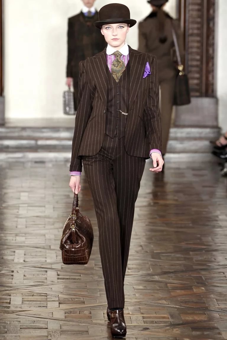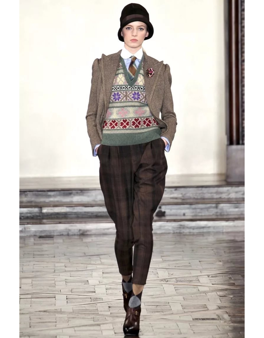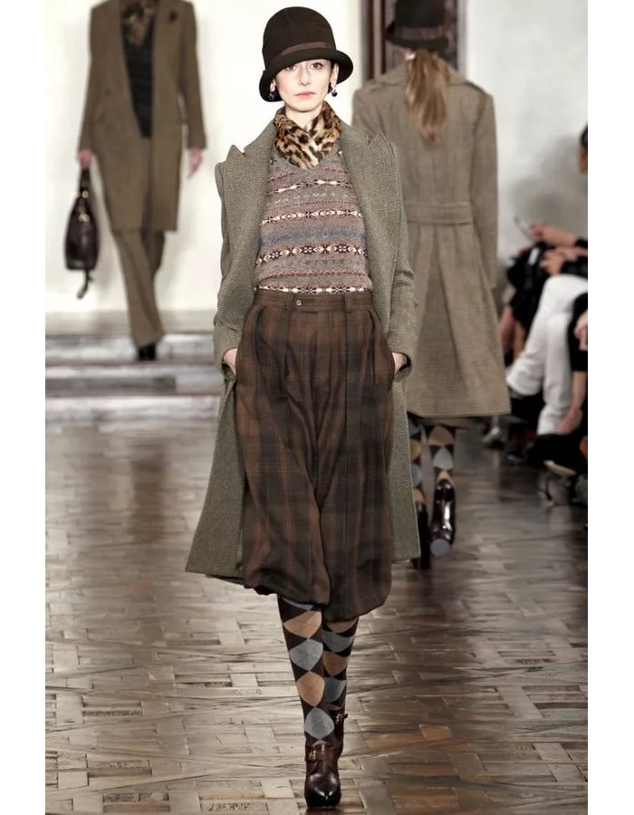 The avant-garde famous Vivienne Westwood contributed to the English classics. She wanted to push the boring dull into the background, adding bright colors and original accessories to stylish images.