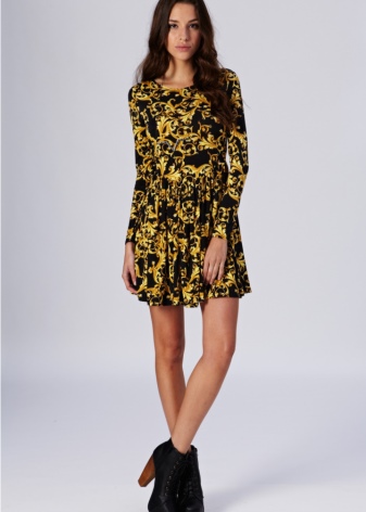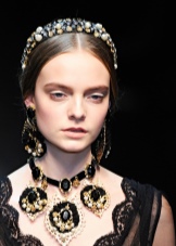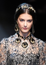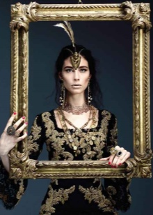 For those who have not yet gained courage and do not dare to shine in public in such dresses, you should pay attention to the various decorations made in this style. As accessories you can choose a luxurious necklace with pearls and other stones, dangling earrings with intricate patterns. Looks good richly decorated headbands, scallops and other hair accessories. In addition, black sunglasses in a golden frame, decorated with rhinestones and a scattering of stones will be a win-win option.
