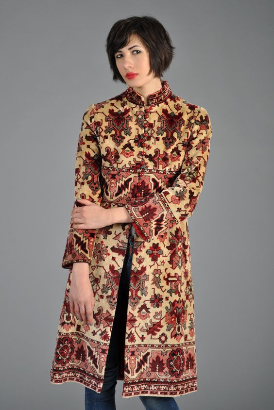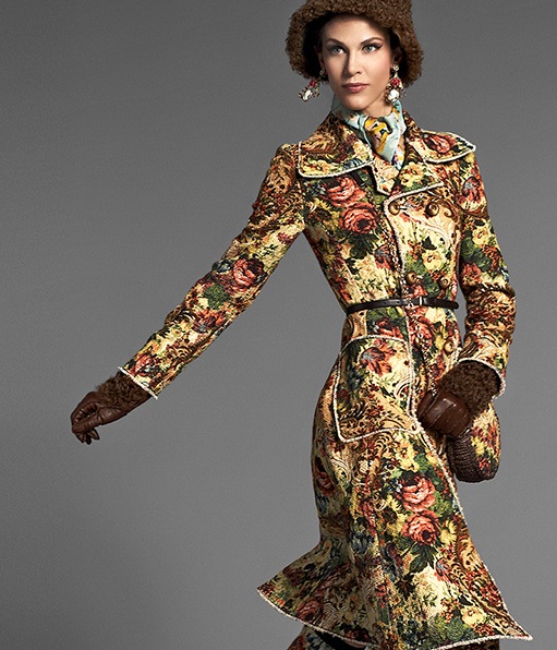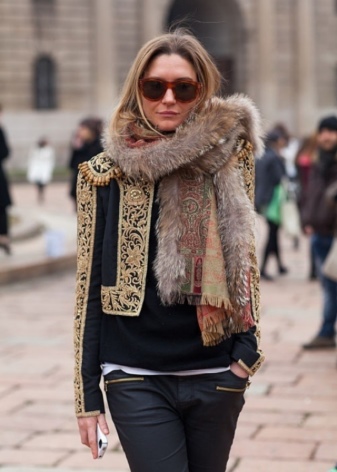 As the outerwear you can pick up a coat in the Baroque style. Characteristic for this direction of the flared sleeves, trimmed with a lace or embroidery stand collar and hem imitating a fluffy skirt will create an elegant look.
