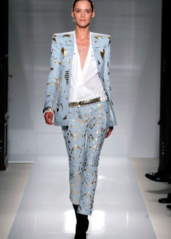 Gold embroidery in the spirit of the Victorian era can also be found on jackets with a fitted silhouette, and on jackets with a frank décolleté line. In any case, these wardrobe details will be quite restrained, so they are quite suitable for inclusion in business images.